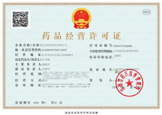 2024年11月19日,我司順利獲得了新《藥品經(jīng)營許可證》。